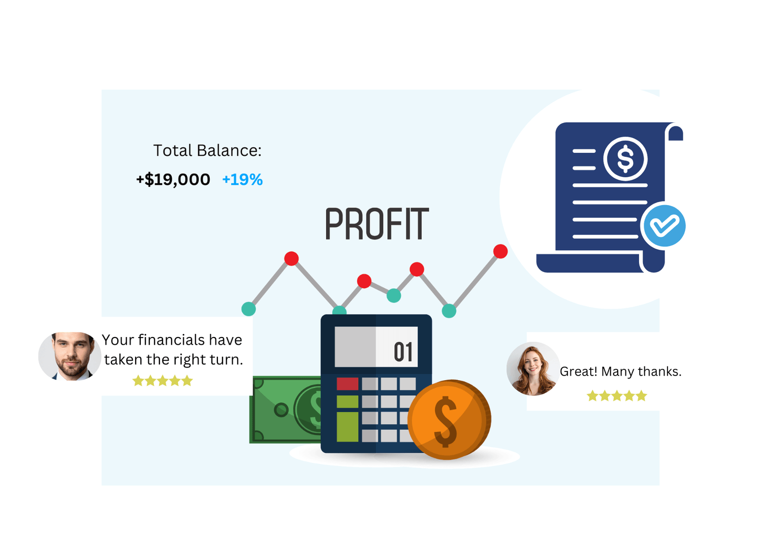 Your account manager reviews and optimizes your financials, then delivers a quarterly financial statement along with a KPI performance analysis.