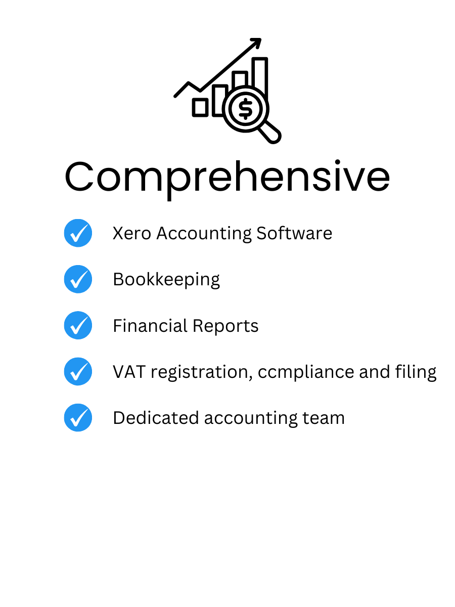 We provide accounting, tax filing, VAT compliance, financial reporting, and KPI analysis in scalable packages.